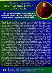 Bài 23: Phương cách quán chiếu ngũ uẩn đoạn tận ba loại chấp thủ do tham ái, ngã mạn và tà kiến.