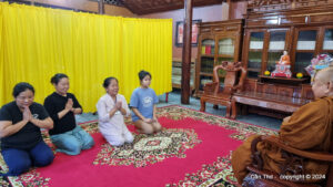 Được biết „Tứ Đại“ gia đình Thiền sinh dẫn đầu là bà nội gần 70 tuổi nhưng rất tinh tấn tu tập, đây là khóa thiền thứ 4 do Thiền sư Sumangala Viên Phúc đến từ Thiền Viện Tharmanakyaw Mahagandhayon Monastery tại Yangon và Taunggyi Myanmar, đã quang lâm về Việt nam hướng dẫn.